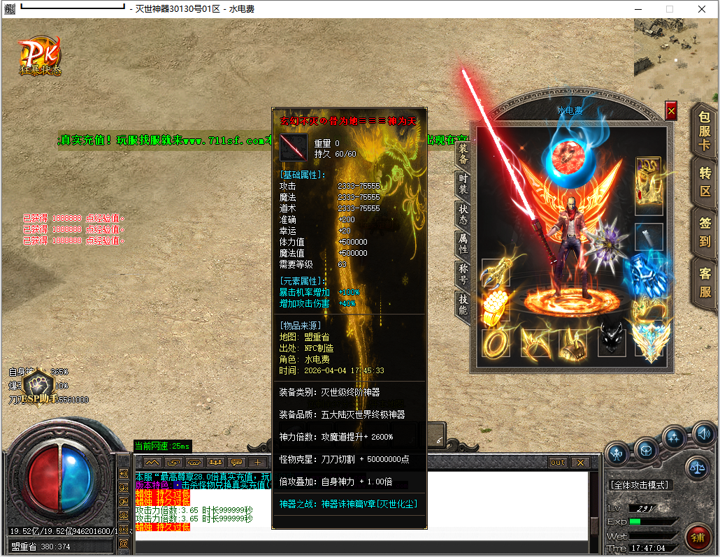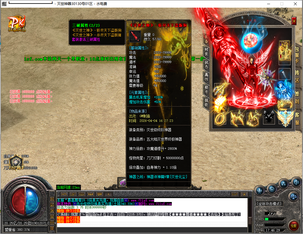 - 【版本说明】: 上线就送MAX刀速+双倍爆率提升.装备嗷嗷全爆.人人土豪装逼又激情!